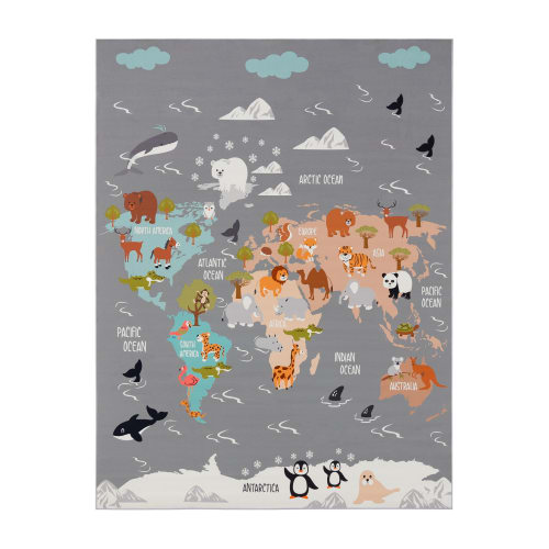 A sleek gray rug designed for indoor spaces with a smooth low-profile surface. The felt and dots backing ensures stability and comfort, perfect for modern interiors with underfloor heating. Washable in standard machines – no special care needed.