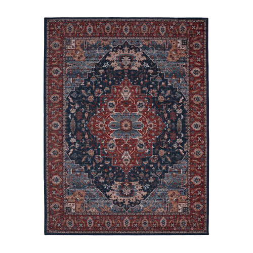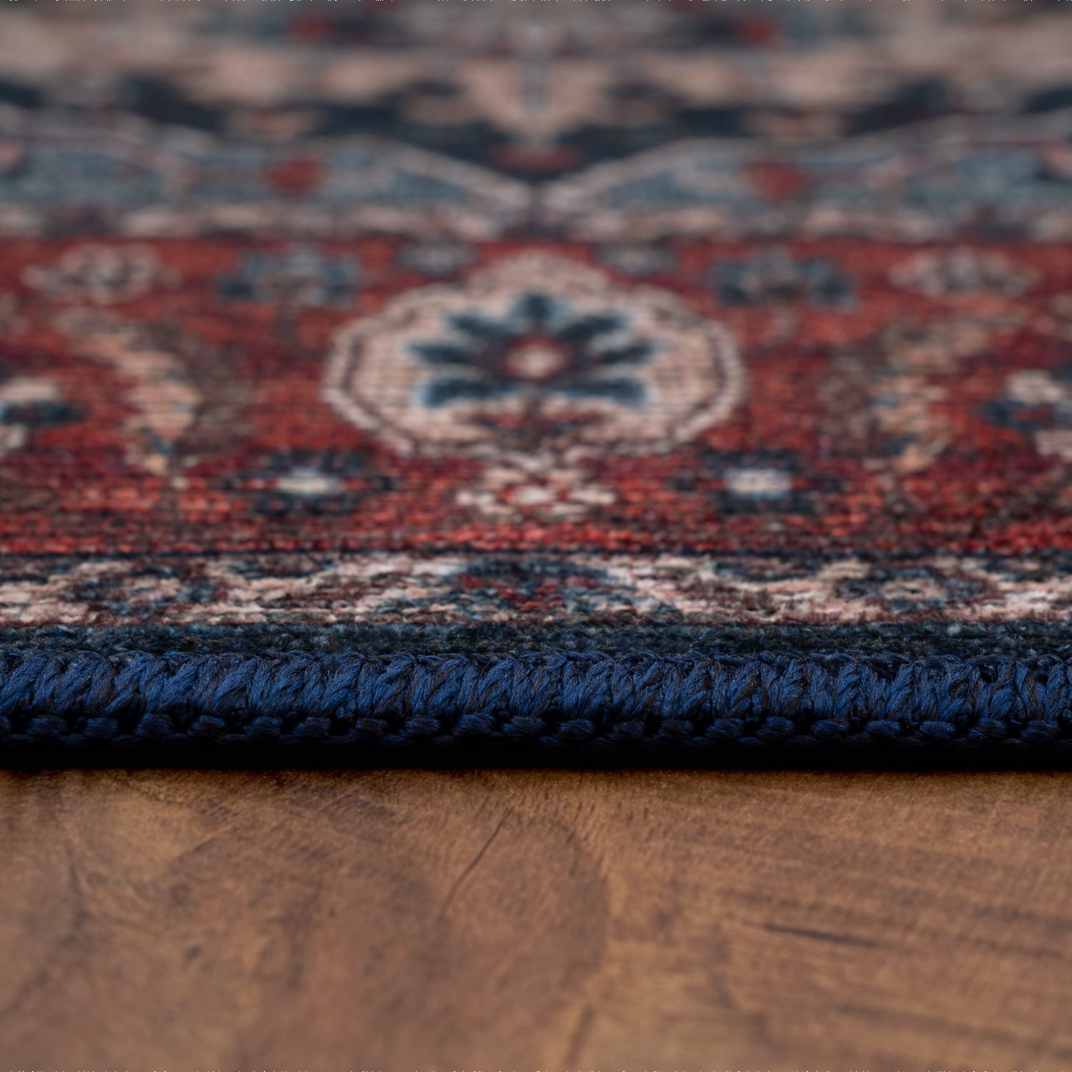 A striking red rug with a smooth, low-profile surface designed for indoor spaces. Featuring durable cotton backing, it offers comfort and stability, ideal for rooms with underfloor heating.