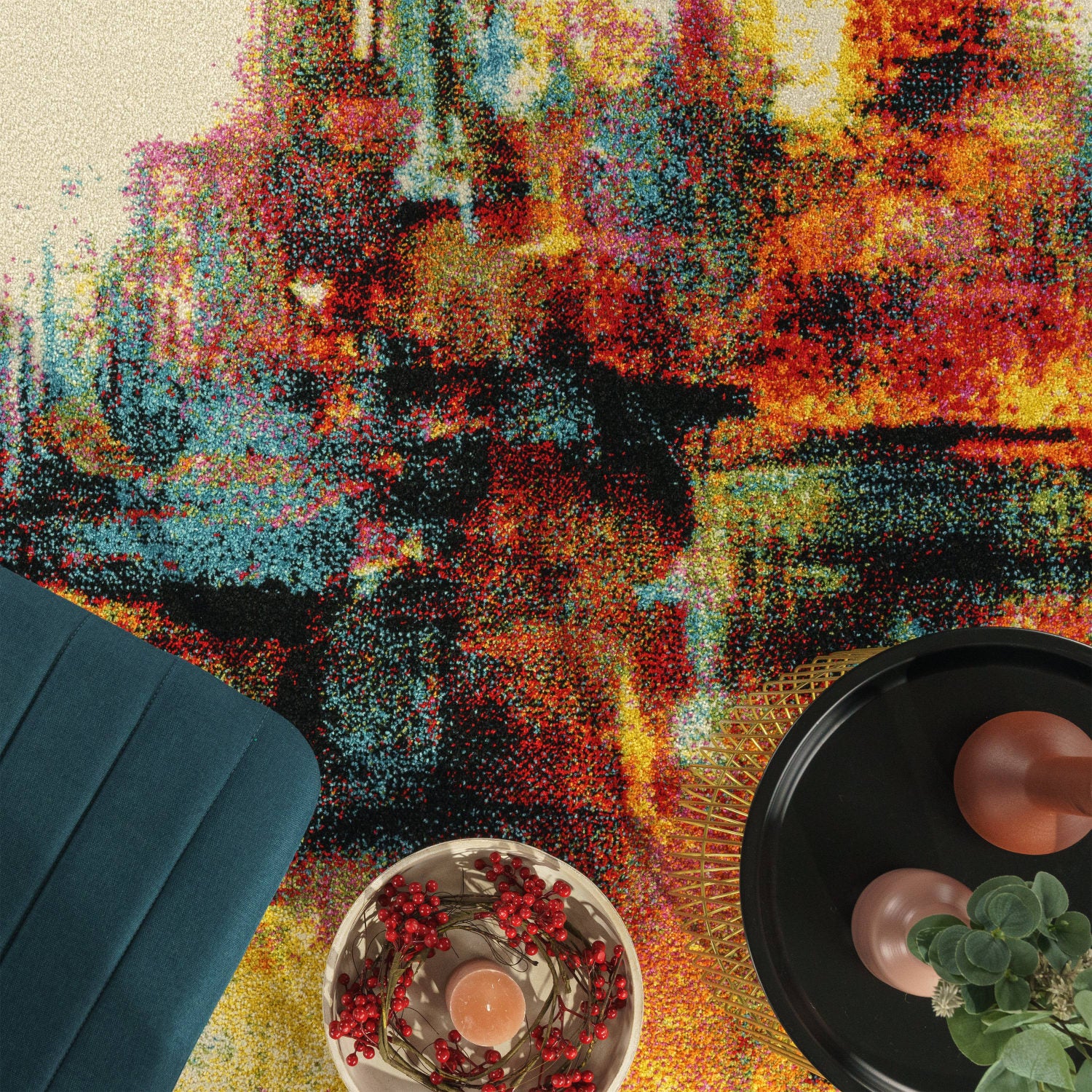 Add a vibrant touch to your home with this multicolored rug from the Canvas collection. Featuring a 12 mm thick pile and a durable jute backing, it’s ideal for indoor spaces. Crafted from 100% polypropylene. It's also safe for use with underfloor heating. Hand cleaning is advised to maintain quality.