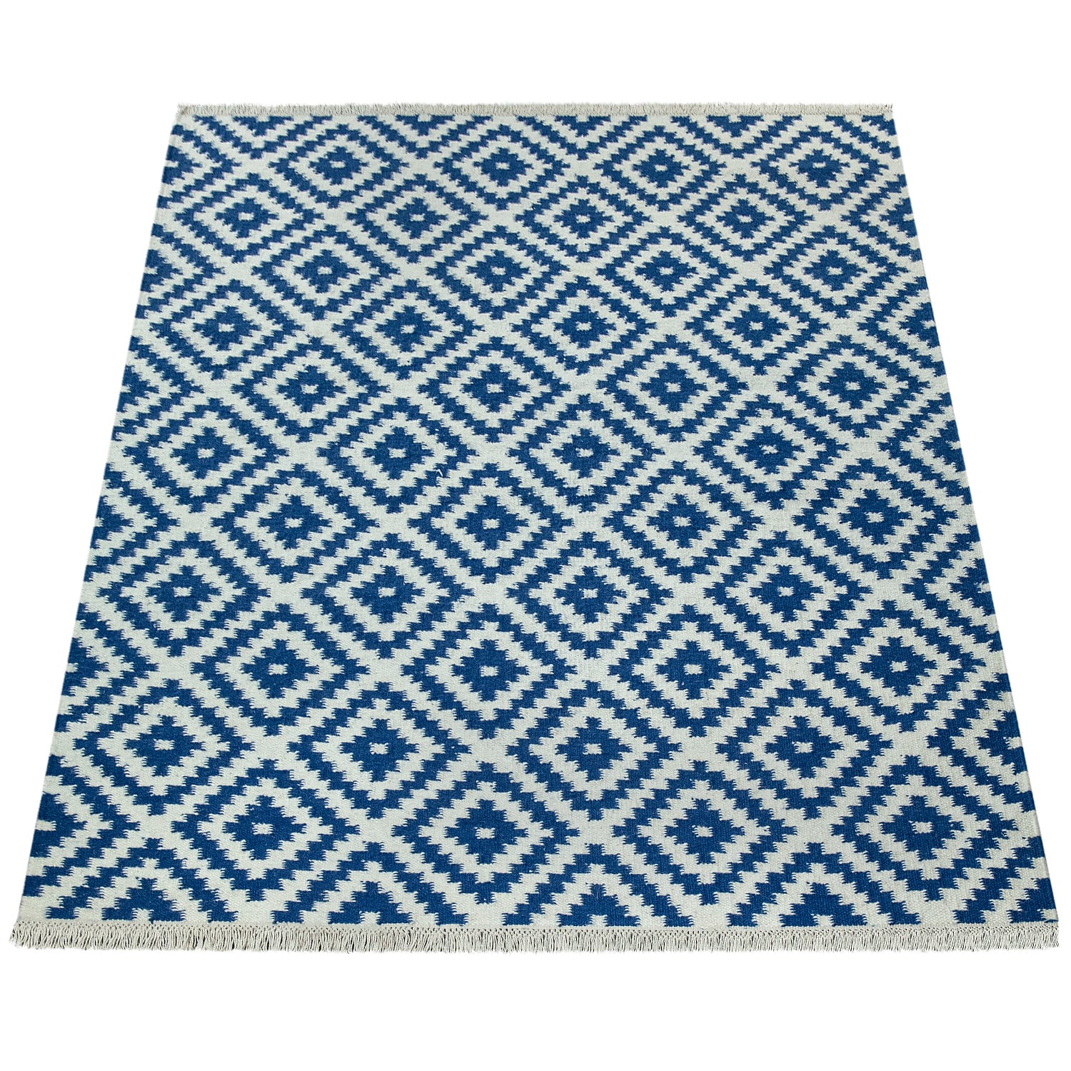 Elevate your space with this handmade indoor rug crafted from premium 80% wool and 20% cotton for exceptional softness and durability. The elegant blue-white pattern complements any decor, while the 8 mm pile height provides cozy comfort. Designed to work perfectly with underfloor heating, this lightweight yet sturdy rug weighs 2800 grams per m² and requires gentle hand cleaning to maintain its quality and beauty.