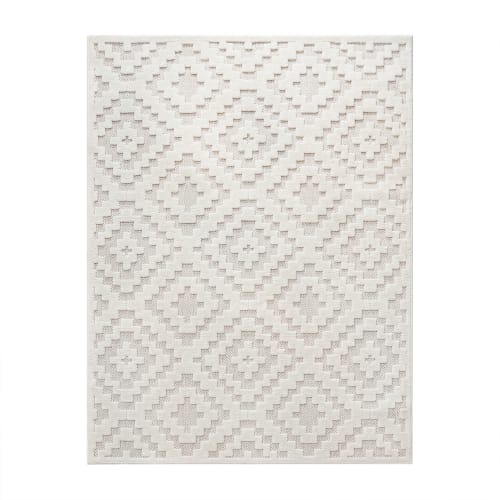 This cream outdoor rug made from 100% polypropylene features a 10mm pile height for lasting comfort and durability. It is suitable for underfloor heating and certified by STANDARD 100 by OEKO-TEX®, ensuring it meets strict safety and environmental standards. Easy to maintain with hand cleaning, this rug is perfect for enhancing any outdoor space.