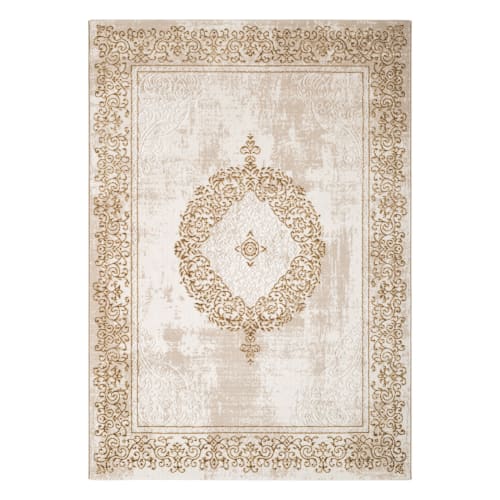 Add timeless charm to your space with this elegant beige indoor rug, crafted from 100% polyester for lasting softness and durability. Featuring an 8mm pile height, it offers a cozy feel underfoot while being suitable for underfloor heating. The cotton backing ensures a secure grip, and the rug is STANDARD 100 by OEKO-TEX® certified for a safe, non-toxic choice. Ideal for living rooms, bedrooms, or any indoor area, this rug is designed for hand cleaning only.